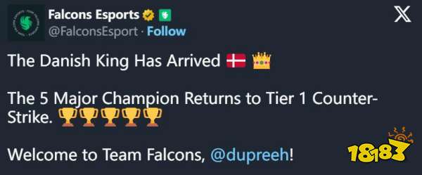 Peter Rasmussen | dupreeh和老朋友Emil Reif | Magisk、Danny Sørensen | zonic重聚!今天Falcons正式宣布从Preasy签下31岁的老将dupreeh,填补Mohammad Malhas | BOROS下放后留下的阵容空白。