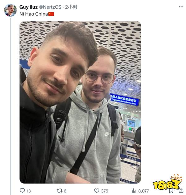 HEROIC和MOUZ战队已经抵达中国。在两小时前,HEROIC选手Guy Iluz | NertZ在个人社交平台上发布了同MOUZ选手Dorian Berman | xertioN的合照,从照片背景看他们二人已经抵达了中国。
