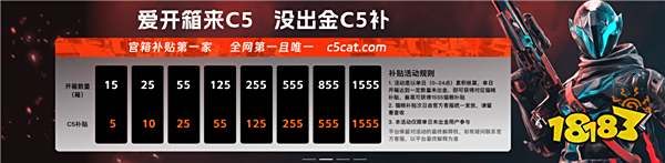 1.C5CAT钥匙商城(点击跳转)。正规备案实名认证网站,公认最好的csgo开箱网站之一,新用户注册即可免单开一次箱子,出红、出金、全蓝统统免单,每周都有各种福利红包抽奖等,饰品可快速取回,爆率绝对真实可靠。