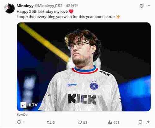 ZywOo女友Minaleyy在社交平台送上祝福:"我亲爱的,25岁生日快乐。希望你今年所有的愿望都能实现。"巧合的是,Vitality将在今日的IEM成都决赛中对阵FURIA,若夺冠不仅能为队伍带来荣誉,ZywOo还有望收获MVP奖牌。
