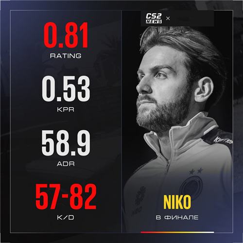 根据赛后统计,NiKo在决赛中的多项关键数据跌至谷底:Rating仅为0.81,K/D为57-82(净负25个击杀),每回合击杀0.53,场均伤害58.9。作为队伍核心和世界顶级步枪手,这样的表现显然远低于预期水平。社区评论尖锐指出,他的发挥甚至与34岁的FalleN不相上下。