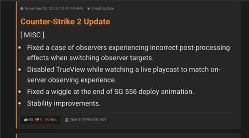 此次更新虽然规模较小,但解决了几个影响游戏体验的关键问题。SG 553动画修复将改善这把武器的使用手感,而观察者视角的优化则有助于提升比赛直播的观赏体验。稳定性改进将为玩家提供更流畅的游戏体验。