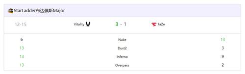 图二Dust2:Vitality以13-3碾压取胜,ZywOo打出1.60 rating