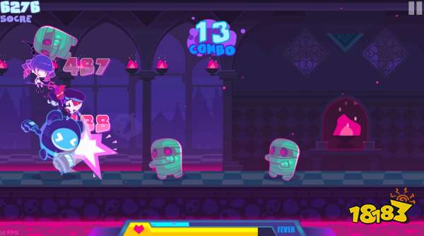 本作选择了一种相对刺激的操作模式:跑酷+音乐游戏。玩家需要选择其中之一来跨越障碍,击打怪物。游戏中怪物也非常可爱,它们大多和游戏场景相关,例如玩家能在鬼堡里看见骷髅小怪,这使得场景整体感更强。它们会从上中下三路纷纷袭来,左右按键配合就可以分别迎击。
