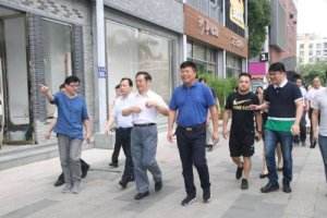 大榕树文化创意园董事长陈瑞银带领各位领导参观园区,并详细介绍了园区由小黑子厂房转型而来的历史沿革和目前园区文化创意产业的发展现状。