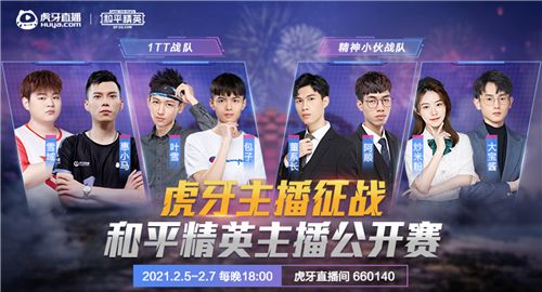 和平精英史上的活久见系列来了!2021年2月5日-2月7日,和平精英官方亲手打破次元壁,举办为期三天的「和平精英主播公开赛」!来自六个不同平台,共计48名人气主播,将在赛场上强强对抗,这大概是和平精英史上参赛选手粉丝最多的一场盛会!2月5至7日每晚18:00,虎牙直播间660140,精彩重磅来袭!