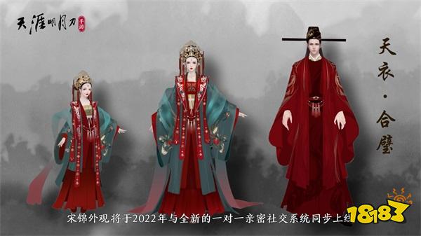 更有宋锦主题宋制婚服天衣·合璧,将于2022年与全新的一对一亲密社交系统、及其浪漫华美的缔约专属场景一同隆重上线。