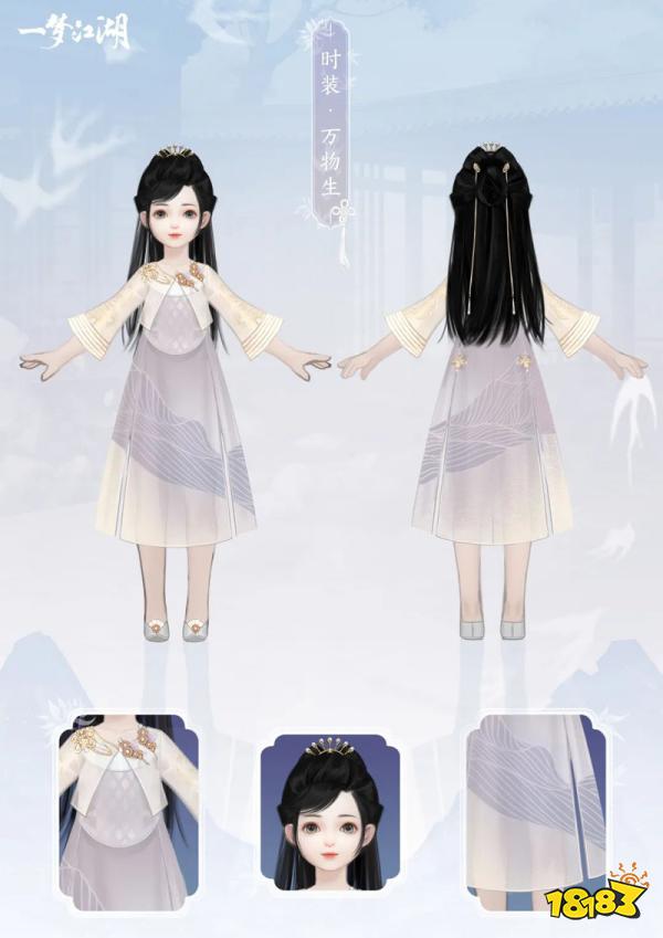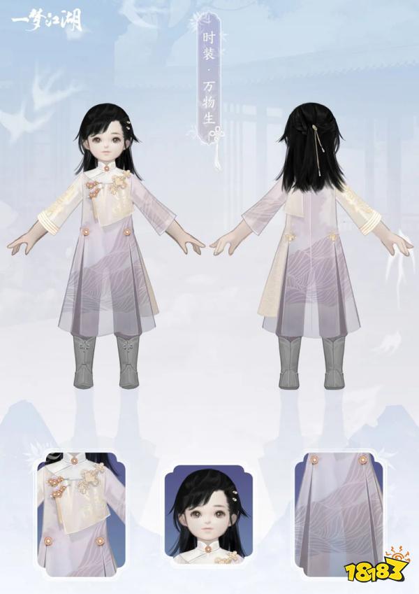 静言万物初,含气如聚沫。四载风雨同舟,如今江湖也将迎来全新的版本,处处都潜藏着无限的生机与活力。少侠,换上这套蕴天地间云雾水汽于裙袍间的时装·万物生,一同迎接我们的第四年吧!