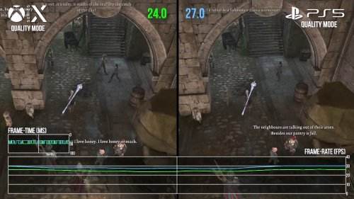 为了进行对比,作者首先指出《博德3》的PS5版本在历经几次更新后其性能已经有所提高,尤其在资源密集的第三章,游戏帧数上涨了不少。