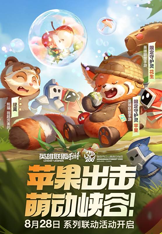 峡谷盟新季,萌友家族再添新成员!LOLM与南京红山森林动物园联动第二弹——“苹果出击,萌动峡谷”暖心开启!这一次,不仅有人气超高、憨萌可爱的小熊猫限定守护灵「苹果」正式登陆峡谷,提莫特地准备了两套全新炫彩皮肤「我超厉害的!」及「不要小看我!」,来和大家见面!