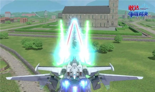 【必杀技】按下必杀键。快速升空后动用全部武装对目标进行长照射攻击,照射命中障碍物附带暴风效果,同时发射大量导弹轰炸目标,使用技能期间附带霸体效果。