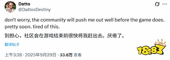 这种失望不仅限于普通玩家,头部内容创作者如Datto、Gladd、GrenaderJake也在近几周相继退出。他们提到的原因包括:PvP的挫败感、长期的负面氛围以及对游戏的倦怠。Datto甚至表示:“在游戏本身之前,社区的压力就会把我逼走。”