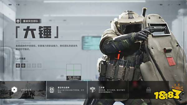 视频中还展示了大锤通过天赋点可构筑出的几种玩法分支:霰弹突入战术、“爆炸锤”、无后坐力炮,玩家可以自由构筑,形成自己偏好的玩法流派。
