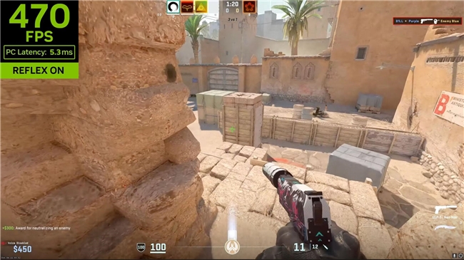 此外,NVIDIA Reflex 技术将优化图形工作流,提供更快的响应速度,可在竞技游戏中帮助玩家更快地捕捉目标,更迅速地作出反应并提高瞄准精度。降低《反恐精英》端到端延迟,助力选手勇攀高峰。