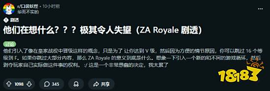 10月18日,一则称:“ZA登峰赛居然让玩家从V级别直接跃升到F级别,只是为了它们的方便,就这样随意跳过,那举办登峰赛的意义是什么?这是个糟糕的决定。”