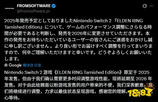FromSoftware官方宣布,原定2025年登陆Switch2平台的《艾尔登法环:褪色者版》将延期至2026年发售,主因需额外时间优化性能表现;该版本整合游戏本体与《黄金树幽影》DLC,新增两种初始职业,但科隆展试玩版曾因帧率波动与操作适配问题获评“灾难级”体验。