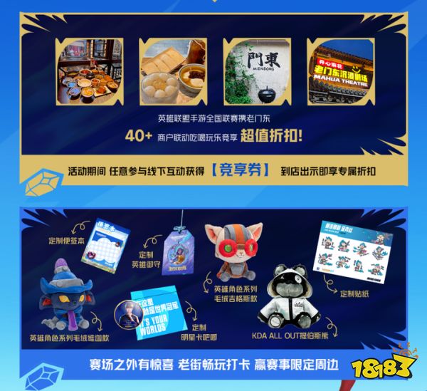 活动期间,参与线下互动即可获得“竞享券”,在指定店铺享受专属折扣,让你在享受赛事的同时,也能收获实实在在的优惠。老门东的古街小巷中还设置了惊喜打卡点,玩家在畅玩打卡的过程中,有机会赢取如英雄联盟角色系列毛绒维迦款、KDA ALL OUT提伯斯熊等赛事限定周边,将电竞的回忆带回家。