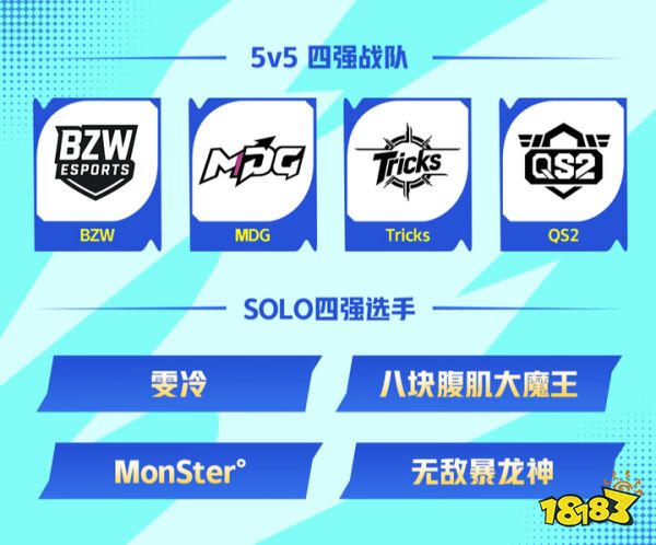 而SOLO赛的四名顶尖选手雯冷、八块腹肌大魔王、MonSter°、无敌暴龙神也将展开个人操作的巅峰对决,50000元的SOLO赛总冠军奖金静候胜者。