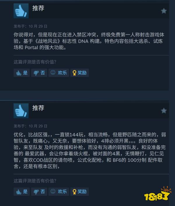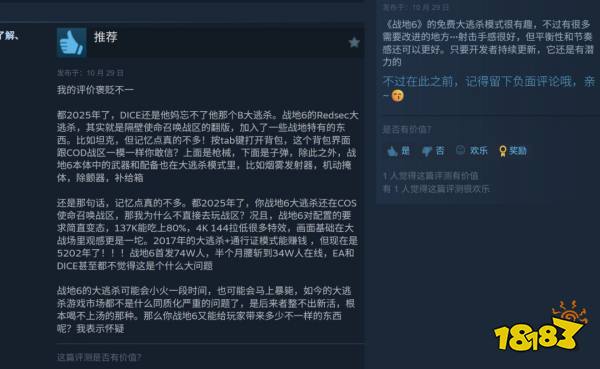 《战地6》大逃杀模式“禁区冲突”(RedSec)于2025年10月28日随第一赛季同步上线,采用免费游玩机制,但上线后Steam全球评价为“褒贬不一”(好评率46%),中文区评价更跌至“多半差评”。玩家集中批评其标点系统混乱、物资刷新率极低、地图空旷缺乏战术掩体、UI交互繁琐及TTK过长(人均200血)等核心缺陷,导致游戏节奏拖沓、整体爽快感不足,被指体验落后于《使命召唤:战区》及《Apex英雄》等同类作品 。