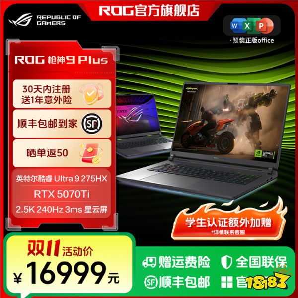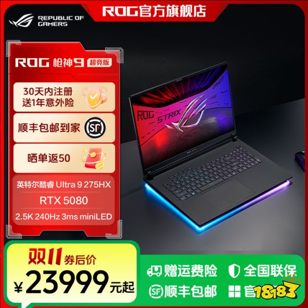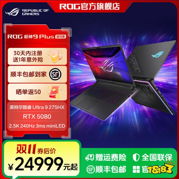 外观设计上,枪神9/枪神9 Plus采用流线型机身,搭配圆润边角还原超跑美感,单键RGB影刃键盘+全环绕RGB底盘灯+RGB全发光Logo营造独属ROG的信仰电竞氛围,潮酷气质拉满。此外,其还支持免工具快拆技术,内存、硬盘30秒即可升级换新,助力玩家轻松解锁更高战力。在双十一期间,枪神9/枪神9 Plus分别迎来国补好价(部分地区),还提供晒单返50元、30天内注册即送1年意外险等福利,想刷新电竞体验的玩家切勿错过。