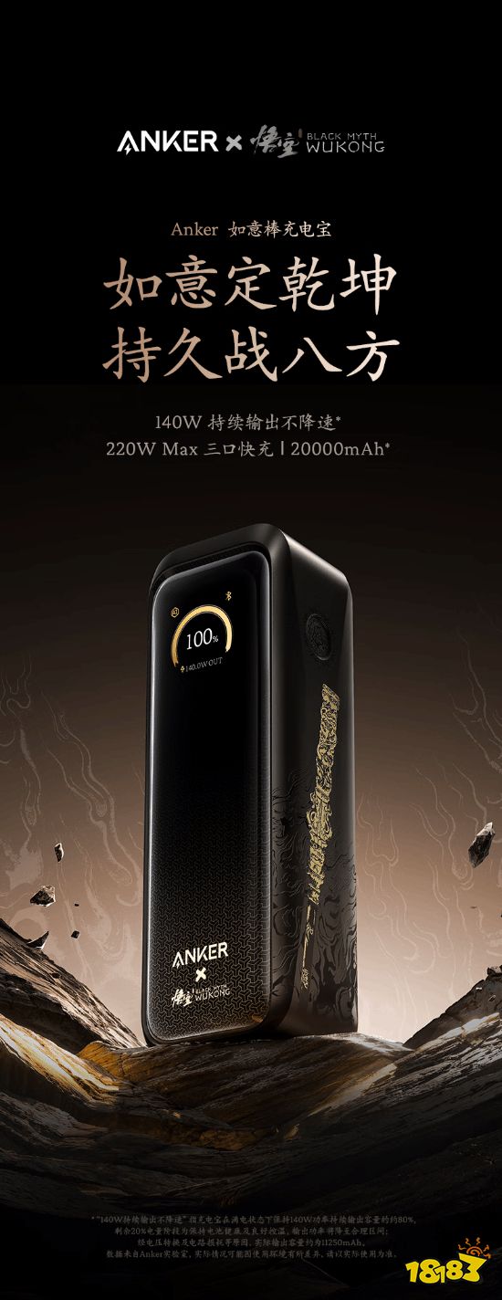 Anker安克与《黑神话:悟空》联名充电宝于2025年11月1日正式开售,售价699元,京东旗舰店首发;产品融合国风美学与220W快充技术,配备20000mAh/72Wh航空级锂聚合物电池,支持PD3.1/UFCS/PPS多协议快充,30分钟可为MacBook Pro充入50%电量,并通过3C认证允许登机,重520g兼顾大容量与便携性。