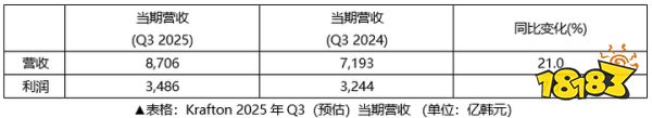 KRAFTON公司今日(11月4日))在投资者关系简报会上公布了2025年第三季度财报。