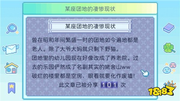 作为一款主打剧情的RPG游戏,《团地日和》并没有将重点放在宏大的主线,或是炫目的特效上,而是致力于通过各种细节,来展现现实生活中那些被我们忽略的人情与温暖。