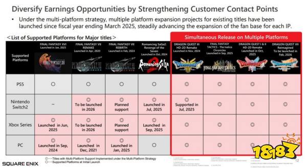 SE制作了一张图表,展示了该公司最新的多平台战略,未来几乎所有游戏都将登陆PC,PS5,Switch 2,Xbox Series等平台。