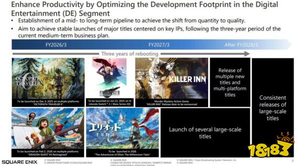 SE最新财报显示,其高清游戏部门通过严控开发与广告成本,在净销售额下滑15%背景下实现营业利润增长28.8%,正式回归盈利;公司宣布全面转向多平台战略,未来作品将同步登陆PC/PS5/Switch2/Xbox,并计划2-3年内用生成式AI完成70%的QA测试工作。