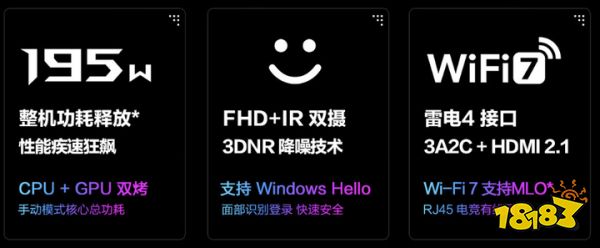 屏幕方面,ROG魔霸新锐2025配备有16英寸2.5K分辨率165Hz刷新率的电竞屏,响应时间低至3ms,峰值亮度达到400nits,并覆盖100% sRGB色域,画面显示细腻流畅,色彩还原真实,适合游戏和轻度创意工作。屏幕顶部集成FHD+IR双摄模组,支持Windows Hello人脸识别登录,既安全又便捷。在接口配置上,该机型提供了3个USB-A 10Gbps接口、1个雷电4接口和1个USB-C 10Gbps接口,总计3A2C配置,还包含HDMI 2.1、RJ45网线接口和3.5mm音频接口,外接显示器、存储设备或网络连接都非常方便。