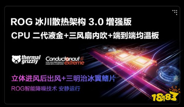 为了确保硬件在长时间高负载下稳定运行,ROG魔霸新锐2025配备冰川散热架构3.0增强版。三风扇内吹设计结合大面积均温板覆盖核心发热部件,能快速将热量导出。在CPU核心区域,覆盖了第二代暴力熊液金导热材料,导热效率显著提升,热量被迅速传递至尾部三明治冰翼鳍片,有效避免了积热问题,使得整机在游戏或生产力任务中可实现至高195W的核心性能释放。无论是连续数小时的高帧率游戏,还是复杂的3D渲染,ROG魔霸新锐2025都能保持低温低噪,提供持久稳定的高性能体验。