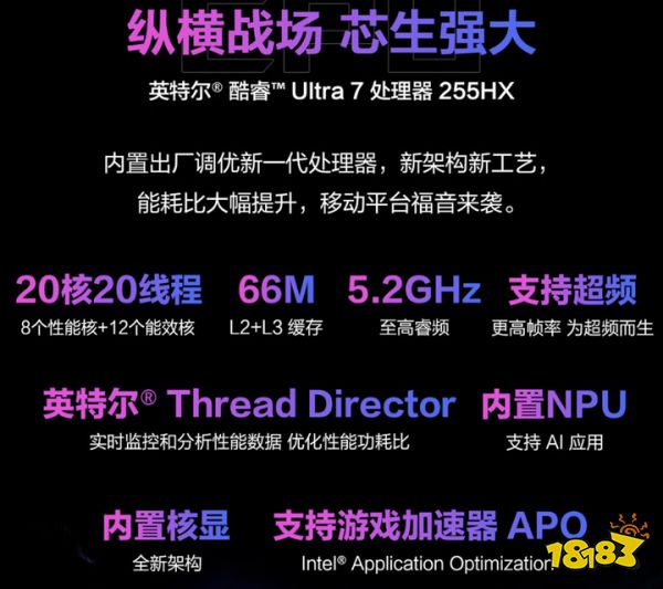 处理器方面,ROG魔霸新锐2025配备全新英特尔酷睿Ultra 7 255HX处理器,拥有20核20线程的强劲配置,最高睿频可达5.2GHz。这款处理器不仅支持APO游戏加速器,能优化游戏帧率和响应速度,还在多任务处理中表现出色,无论是运行大型游戏还是同时进行直播、录制,都能保持流畅不卡顿。