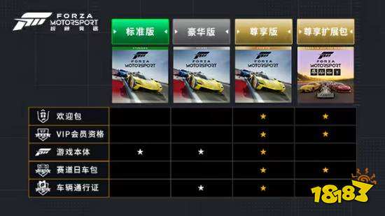 豪华版多了车辆通行证,尊享版则额外能享受欢迎包、VIP会员资格、赛道日车包。