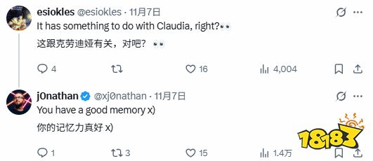 据了解,@xj0nathan在这一则贴中回应了“是否与克劳迪娅(艾吉奥的妹妹)有关”称:“你的记忆力很好。”