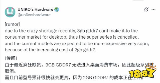 这项短缺将直接冲击原先传闻中的RTX 5080 SUPER、RTX 5070 Ti SUPER和RTX 5070 SUPER 等型号。