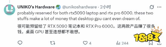Uniko’s Hardware还表示,稀缺的3GB GDDR7正在被保留用于其他产品,包括RTX 5090移动版和RTX PRO 6000专业卡等,因为这两款产品赚了很多钱,而桌面GPU甚至想都不要想。