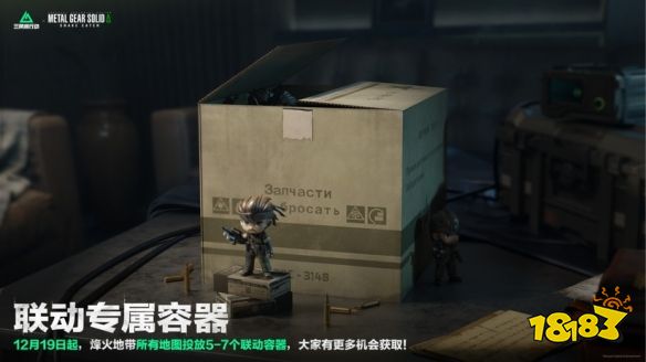 12月19日起,在烽火地带搜索联动容器就有机会获取联动专属的【裸蛇】与【夏娃】手办。完成活动任务,必得【手办-夏娃】。同时,之前我们收到了很多反馈,各位干员认为联动手办很独特,但如果有多个的话收集起来非常的困难。我们也希望大家有更多机会能获取到,在活动上线时,烽火地带所有地图都将投放5~7个联动容器,希望增加更多的联动容器能让大家能有更好的体验。