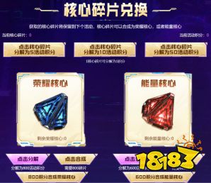 另外CFer可以将核心碎片分解为对应活动积分,当达到800活动积分或碎片时可合成荣耀核心,达到600积分或碎片可合成能量核心。