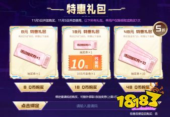 本期特惠礼包有:8Q币购买800*CF点附赠1张抽奖券;18Q币购买1800*CF点附赠1张抽奖券+10元代金券;48Q币购买复活币×10附赠10张抽奖券!注意以上礼包限购1次。此外,绑定好友邀请码后购买,还可额外领取1张抽奖券,上限1张,快来邀请好友们领取吧!