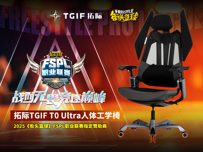2025《街头篮球》FSPL职业联赛常规赛将于10月18日正式拉开帷幕,作为《街头篮球》赛事体系的顶级殿堂,本届联赛以 “战而无畏,竞逐巅峰” 为主题,在赛制革新、奖金设置与生态构建上实现全面升级,为玩家们呈现一场融合街头文化与电竞激情的年度盛宴。拓际TGIF携旗下TGIF T0 Ultra人体工学椅将全程赞助本次FSPL职业联赛,专利“零动”底盘,全程动态支撑,保证不空腰,为职业选手们保驾护航!