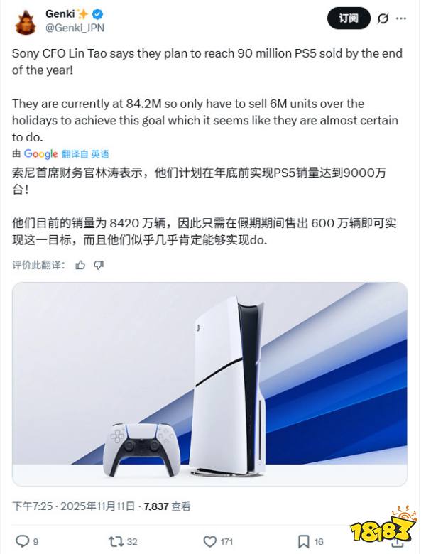 此外,Lin Tao还表示,他们计划在年底前让PS5的累计销量达到9000万。目前PS5的累计销量为8420万台,因此只需在圣诞假期期间售出600万即可实现这一目标,而且很容易达成。