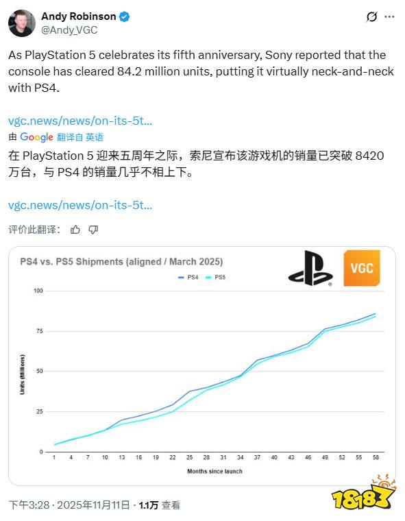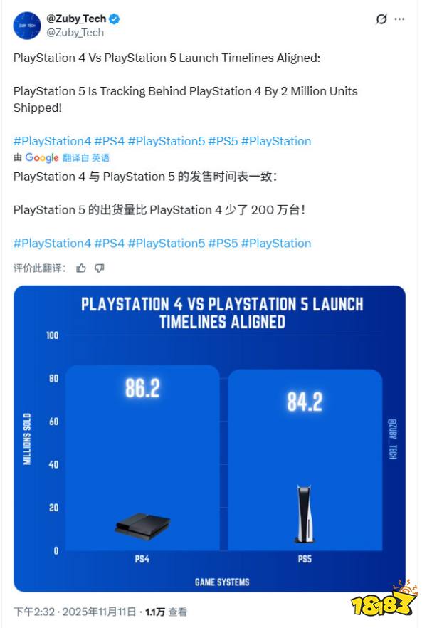 PS4和PS5同期销量对比:PS5仅落后200万台
