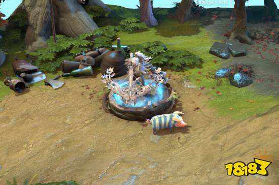雕像宠物噗吱猪是全新类型的宠物。当你安全处于基地时,你的噗吱猪会围着你四处走动,陪伴着你。他只想要一些爱(和一些零食),无论你是要开始一场全新的比赛,在泉水里放松身心,还是重返战场,他都会为你的一天增光添彩。当你离开基地时,你的噗吱猪会在你的雕像周围闲逛(或者如果你没有设置雕像,那就是在基地的另一座建筑物周围),这样他在战斗中就不会挡路。如果你的雕像被摧毁,你的噗吱猪就会逃跑,在下一场比赛之前保证自己的安全。
