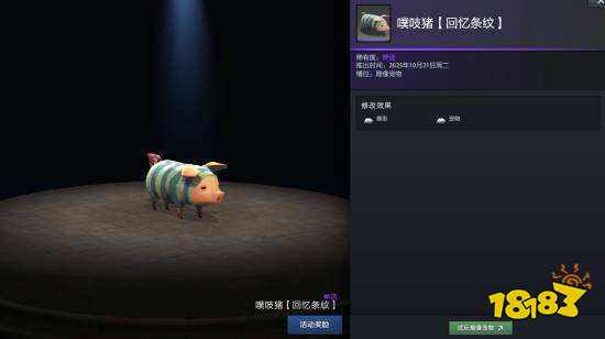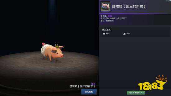噗吱猪包括基础款在内,拥有6套可打造的外观,包括回忆条纹、见习调查员、嗡嗡嗡小蜜蜂、南瓜之逆袭、魅惑粉红、国王的新衣。