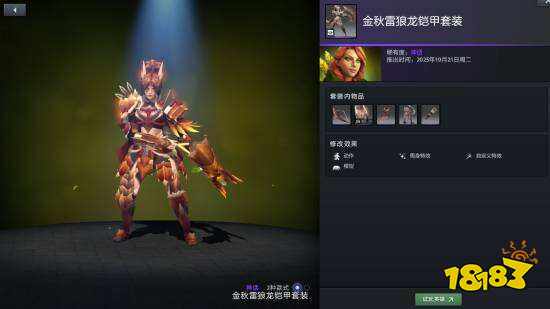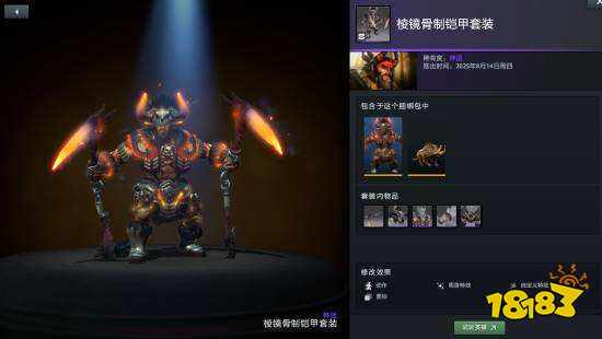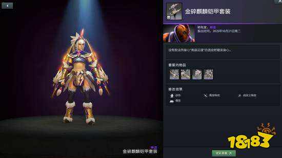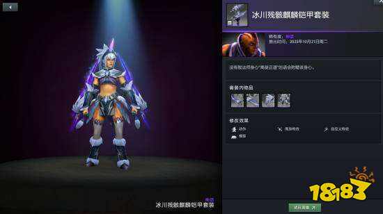 敌法师身心套装麒麟铠甲拥有三种额外款式可供打造,分别为冰霜残骸、金色和棱彩。