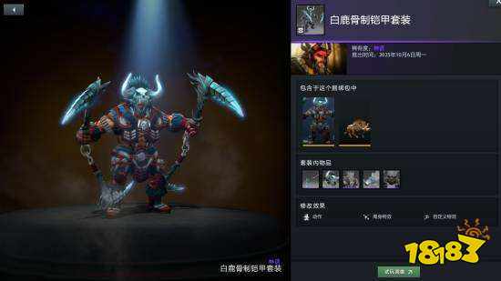兽王套装骨制铠甲拥有三种额外款式可供打造,分别为白鹿、金色和棱彩,其中棱彩款式的武器部件棱彩暗红锁镰为不朽品质,可改变兽王野性之斧的技能图标和特效。