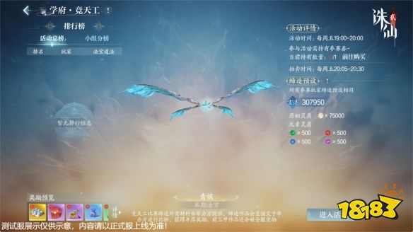 在此,系统将免费提供所有缔造材料,所有玩家使用统一的默认模板,全心比拼对炼宝之道的领悟。每人拥有两次机会,最终以法宝蕴含的“道法”论高低,仙友们仅需购买门票即可参与活动。