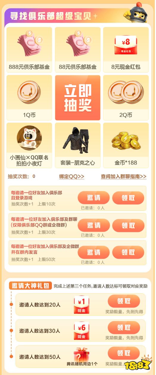 邀请抽奖|888元俱乐部基金、现金、Q币、QQ拍拍小夜灯、套装-朋克之心