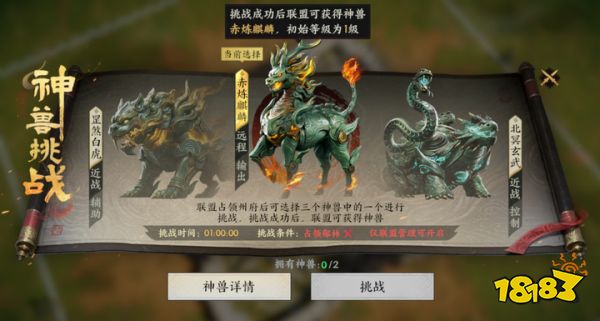 北溟玄武、罡煞白虎、赤炼麒麟三大神兽震撼登场!主公可与联盟成员协力攻占神兽城池,开启神兽挑战。成功驯服神兽后,更可培养其成长,在关键时刻通可以通灵召唤神兽进行辅助战斗,并且可操控灵兽释放其主动技能,改变战场局势!