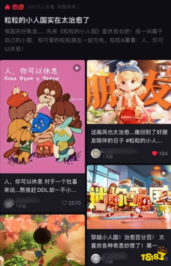 《粒粒的小人国》在9月24日首曝后,迅速成了抖音和小红书上的新晋“流量密码”。在抖音,微观世界主题让大量平台作者自发产出短视频,催生了不少爆款作品;在小红书,精致细腻的画风激发了用户的分享欲,催生了大量讨论。这也是推动游戏首日热度破3000万、两周破亿,并在TapTap获得9.6分、百万预约的关键所在。
